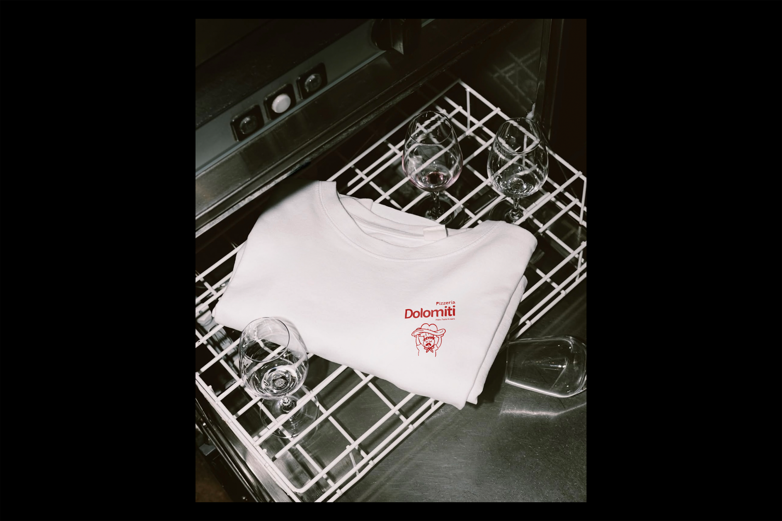 The Dolomiti visual identity was designed to work across both physical and digital environments from pizza boxes and menus to staff uniforms and the website.