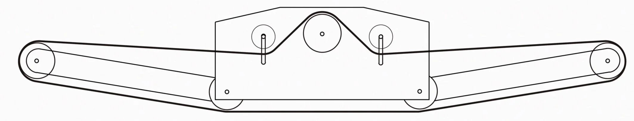 To meet these demands, we designed a track-based robot with front and rear arms that unfold at a 10° angle before movement begins, extending the total body length to 52 cm. This transformation gave the vehicle the reach needed to cross the trench while maintaining balance and traction across every segment.