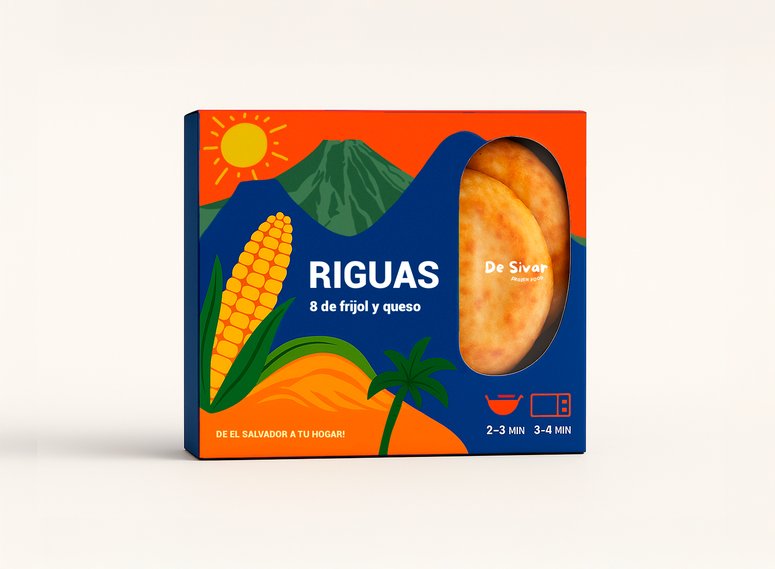 Each variation was also inspired by the context where the food is most often enjoyed: pupusas as a national dish found everywhere, pastelitos tied to colorful small towns like Ataco where they are sold in the streets, and riguas connected to rural, traditional settings. These details root the design in Salvadoran culture while keeping it modern and export-ready.