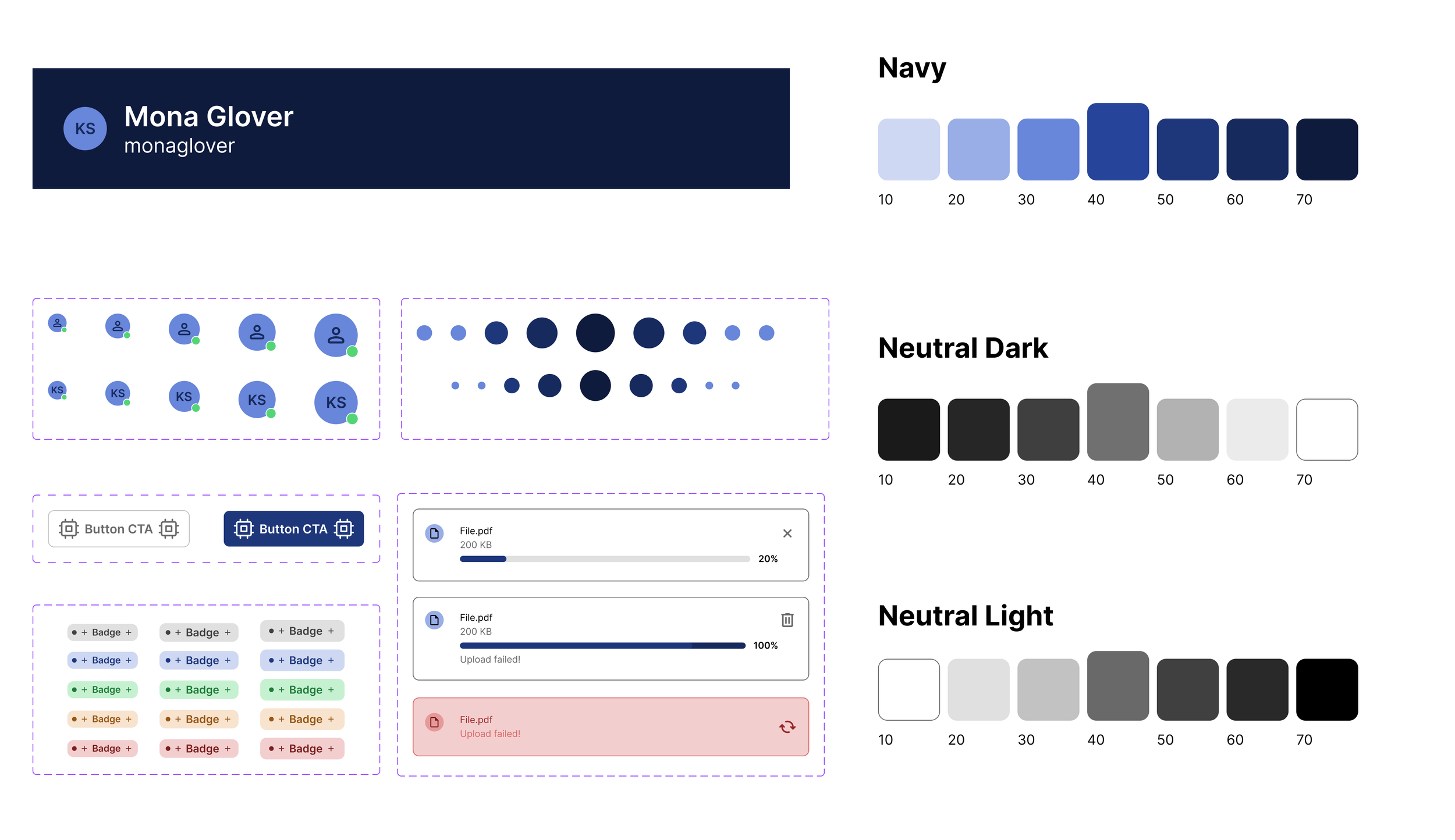 From dashboards to mobile UI components, the system was designed to adapt to each client’s specific needs while maintaining a coherent structure and visual language. -